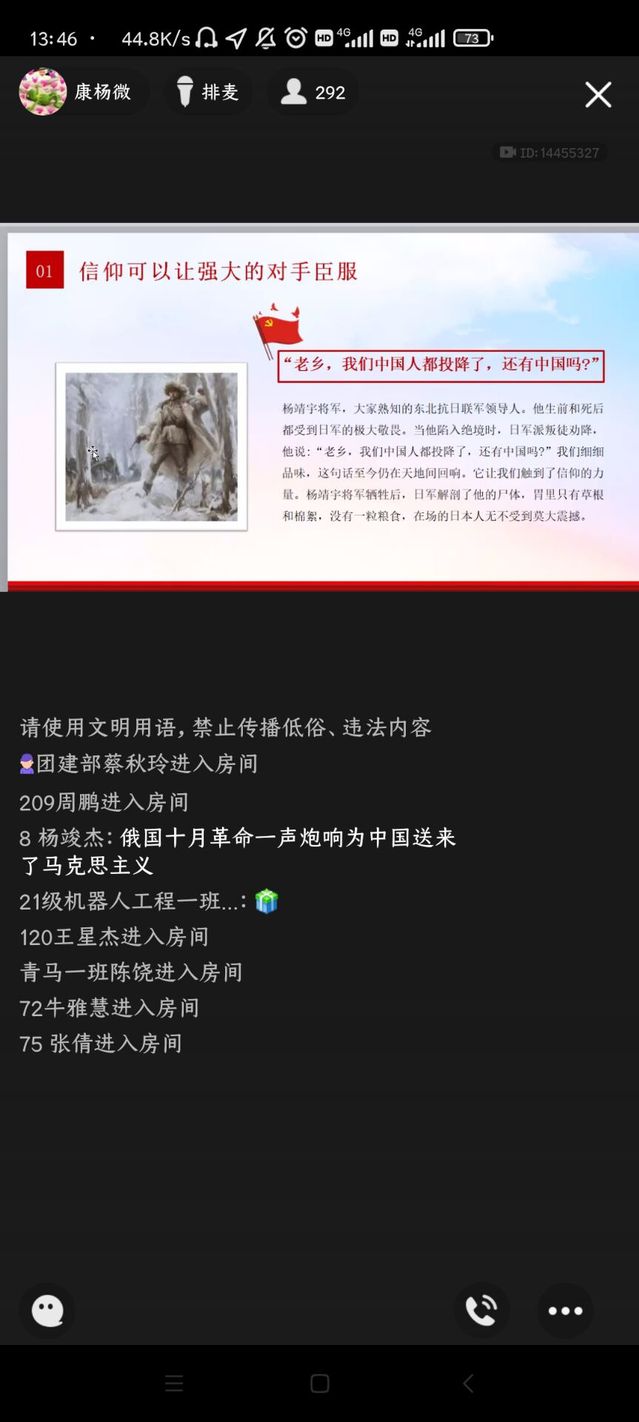 此次讲座,同学们认识到了信仰的强大力量,同时在康老师的引导下开始了对自身信仰的探索和追寻。此次线上讲座让同学们受益匪浅,听党指挥,坚定不移跟党走这句话在同学们心目中不再只是一句口号,而是千万中国人民的信仰。