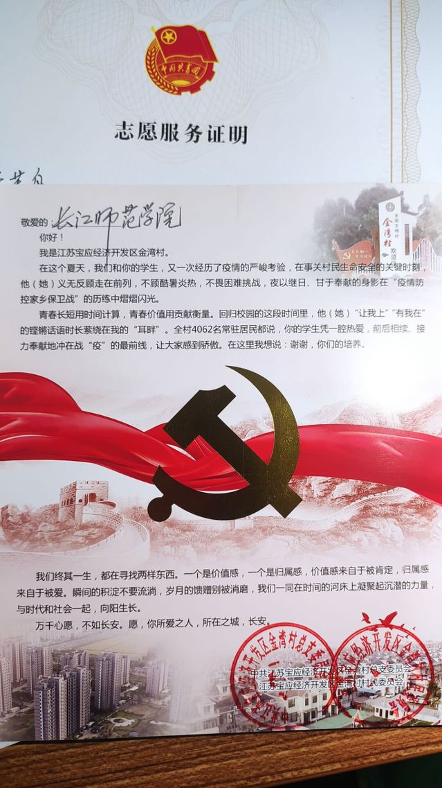 在排查扬州当地群众的疫苗接种情况、全市核酸检测工作、督促村民做好疫情防护工作的现场总能看到一个年轻的身影,他戴着口罩、防护眼镜,文质彬彬、耐心地完成自己的任务。这个身影便是此次参加抗击疫情志愿活动的欢迎来到公海7102019级机制2班员工于若舟。“哪里需要,哪里就有志愿者的身影”,作为入党积极分子的他以响应集结号的速度行动起来,利用假期时间主动为防疫献上自己的力量,充分展现出长师学子的使命与担当。