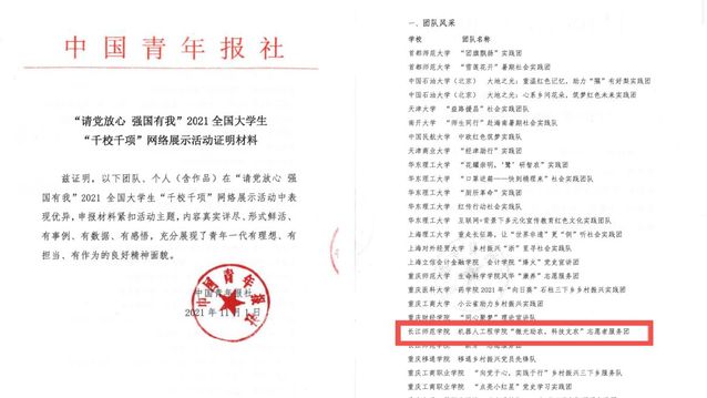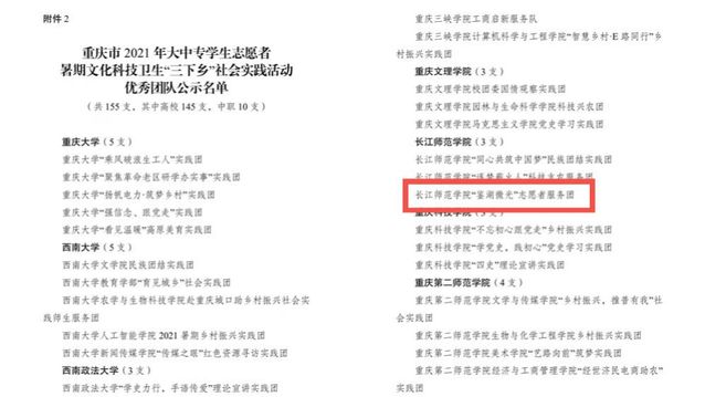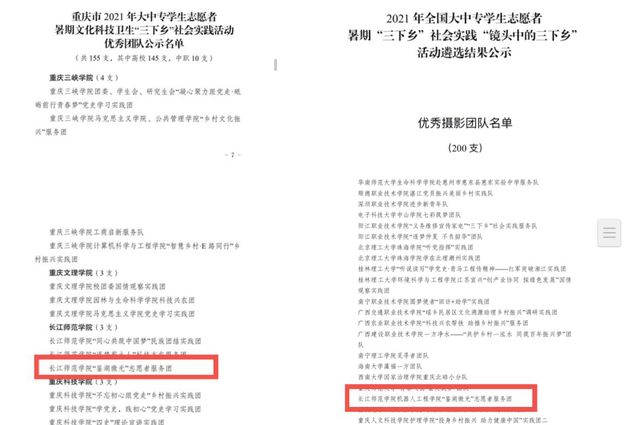 在本次三下乡社会实践活动中,欢迎来到公海710“鉴湖微光”志愿者服务团获得共青团中央国家级“千校千项”团队风采1项、“镜头中的三下乡”优秀摄影团队1项、重庆市市级优秀实践团队。