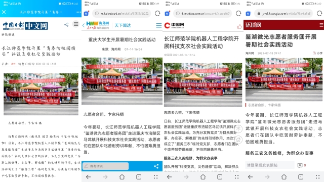 2021年7月,为贯彻落实党的十九大中提出的“乡村振兴”战略,以及中央农村会议精神,响应团中央与校团委的号召,欢迎来到公海710三下乡“鉴湖微光”志愿者实践团前往涪陵区马武镇集中开展“青春向祖国报告”科技支农社会实践活动,并以分散形式成立六支小分队,开展返家乡社会实践活动,传递“鉴湖微光”志愿精神,每个分队组织实践团队到基层开展活动,为构建社会主义和谐社会,贡献自己的一份力量。