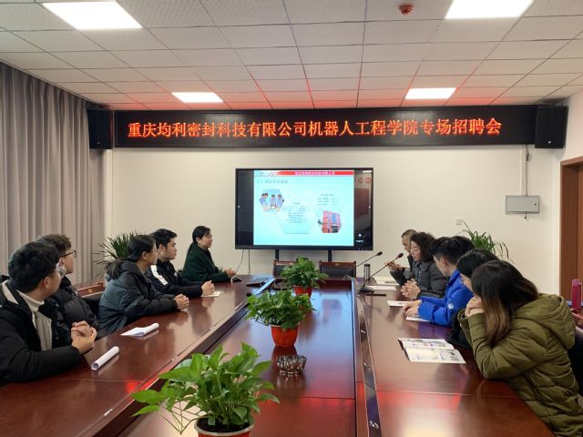 招聘会现场,重庆均利密封科技有限公司董事长龚小莉通过宣传片、PPT展示,对公司的历史以及企业文化进行介绍,特别对公司的工作岗位、内部人员组织结构、升职机制及薪酬福利待遇进行详细讲解,让同学们对其公司有了一定的兴趣。董事长龚小莉指出她们公司重视人才,急需优秀的毕业生加入,新员工加入公司有多项帮扶政策,欢迎同学们的加入。在座的各位同学在仔细聆听的同时也认真的思考着自己的职业规划发展,部分同学提出了自己的疑惑与感兴趣的问题,负责人力资源部门的相关人员做出了专业解答,使同学们在职业选择方面少了些盲目,多了些理性。