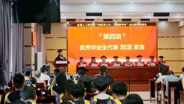 视频播放结束,全体与会人员起立,奏唱中华人民共和国国歌,国歌唱毕。由万浩川宣读毕业生表彰决定和考取硕士研究生的表彰决定,万浩川表示:希望受到表彰的同学,珍惜荣誉,戒骄戒躁,在新的学校争先创优,奋发成才。同时,全院同学要以受表彰的同学为榜样,刻苦学习,锐意进取,不断提升自身综合素质和能力,为母校增添光彩。在校员工代表高兴宇同学、毕业生代表刘洁同学和教师代表姚正华博士分别进行了发言,向同学们发出寄语并希望同学们不负韶华、不负时代、不负人民,在青春的赛道上奋力奔跑,努力成长为堪当民族复兴重任的时代新人。