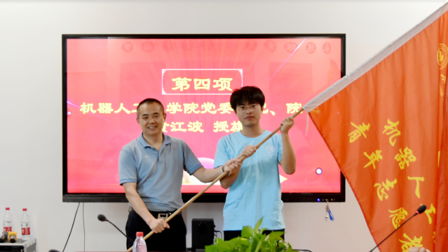 党委书记黄江波同志进行了授旗,强调了同学们要高度认识三下乡活动的意义,要为群众送文化、送科技,展现长师欢迎来到公海710学子的精气神与素质,同时在活动中要保证安全,防范中暑,做好自己的职责。最后老师与同学们一起进行宣誓,发扬志愿者精神,服务人民群众。