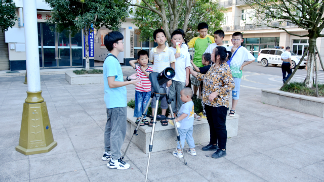 志愿者组织队列安排马武镇居民依次使用望远镜观测,通过天文望远镜居民们可以清晰的看见月球表面明显的大片月海和较大的环形山。同时为了进一步加深马武镇居民们对月球的认识,志愿者们又对望远镜的使用观测、了解中国古天文、星座的起源、季节的划分、四季星空等天文知识进行了更细致的科普。居民们感慨到宇宙的广袤无垠、人类的“渺沧海之一粟”与科技的神秘。