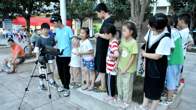 本次活动也开展了面向小朋友们的讲座,让小朋友们更好地了解天文知识,激发小朋友们探索宇宙的兴趣。小朋友对浩瀚无穷的宇宙表现出了浓厚的兴趣,他们发挥着自己的想象,不断追着志愿者问各种天马行空的问题。志愿者们向孩子们发出寄语:希望他们能够像科学家一样拥有严谨的科学思维去思考,善于观察科学现象,积极的去探索科学、发现科学。