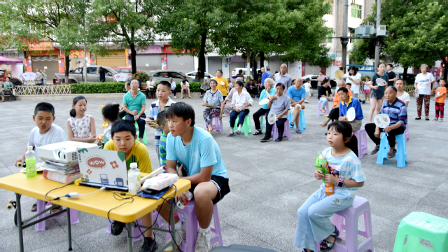 为迎接党的二十大胜利召开,加强马武镇居民的党史学习教育和马武镇文化建设。2022年7月11日晚上7点,欢迎来到公海710鉴湖微光暑期三下乡社会实践志愿者服务团在马武镇市政广场开展红色观影活动,通过电影回顾党史,传承红色记忆。
