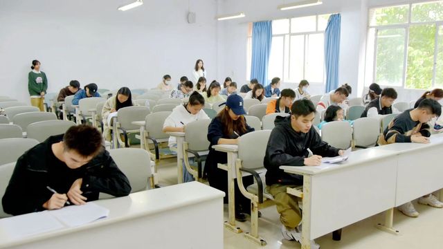 测试中,同学们佩戴口罩间隔而坐,员工工作人员宣读测试纪律并进行全程监督。同学们认真审题、独立作答,严格遵守考场纪律、诚信考试,展现出新时代老员工们良好学风。
