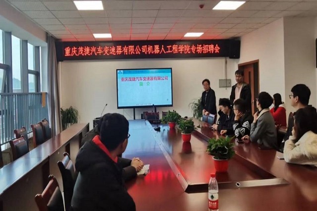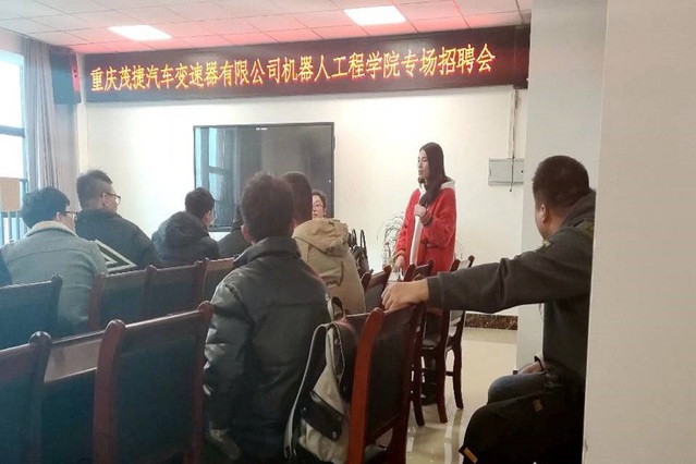 会上,经招聘员介绍,重庆茂捷汽车变速器有限公司成立于2014年10月21日,经营范围包括研发、生产、销售、汽车零件部件;货物进出口业务,涉及领域与公司专业息息相关,符合公司员工毕业后从事的工作岗位,招聘岗位与公司毕业生的专业对口性强。