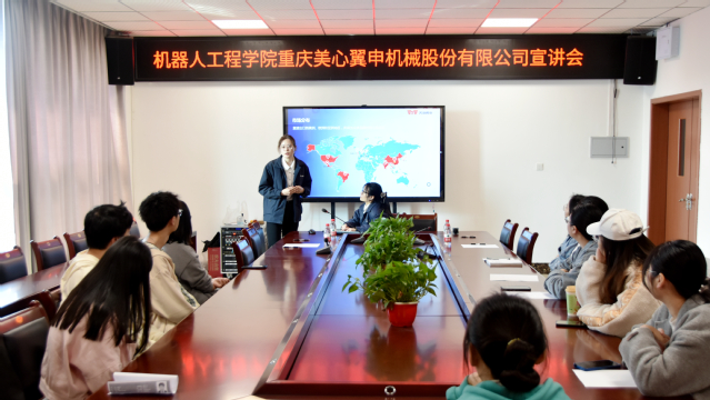 重庆美心翼申机械股份有限公司是一家从事摩托车零部件服务,汽车零部件服务,技术咨询服务等业务的公司。会议上公司代表通过向在场的同学们介绍相关的工作岗位与职责,详细讲解了公司聘用周期、薪资福利、晋升渠道等。对于同学们的问题,公司代表都一一耐心地回答,让同学们对美心翼申机械有限公司有了初步的了解,并表示非常欢迎同学们加入。
