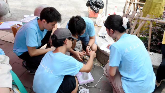活动中,志愿者们有条不紊的布置好摆点帐篷,向当地居民宣传此次维修活动,同时将需要维修居民的联系方式记录在表格之中。志愿者们分为两组,一组为送上门来风扇、破壁机、电饭煲等家电展开维修工作,另一组按照登记表上的联系方式联系居民,进行上门维修。志愿者们对家电损坏现象进行分析,拆卸家电找出损坏的原因,随后对症下药进行维修。