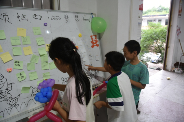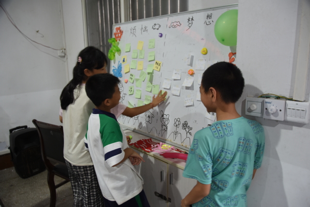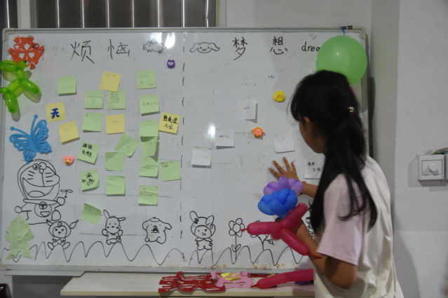 在课堂上,志愿者们用亲切的语言和生动的案例,向孩子们介绍了心理健康的重要性,教会了他们如何正确地认识自己,表达情感,处理压力和冲突。志愿者们与小朋友们还展开了一系列有趣且富有启发性的活动。首先,志愿者与孩子们分享了自己的故事,让孩子们感受到努力和奋斗的重要性。接着,志愿者们组织了一个特别的环节,让孩子们在便签纸上写下自己的烦恼和梦想。孩子们认真地动笔,有些写下了学习上的困惑,有些表达了对未来的美好憧憬。这个活动既给了孩子们发泄情感的空间,又让他们看到自己的希望和可能性。