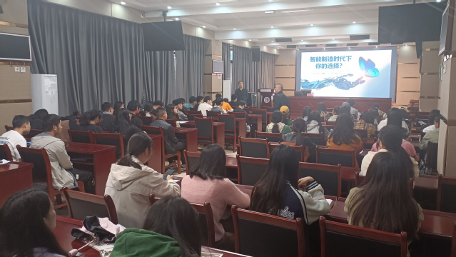 主讲人以“智能制造时代下你的选择?”这个问题为起始点,让同学们知道智能制造行业的现状以及如何面对就业。主讲人讲到公司的人才培养机制,让同学们更加全面了解公司的教育培养形式。主讲人耐心回答同学们的问题,让同学们对华航唯实机器人科技有限公司有了更深入的了解,他表示非常欢迎同学们加入。