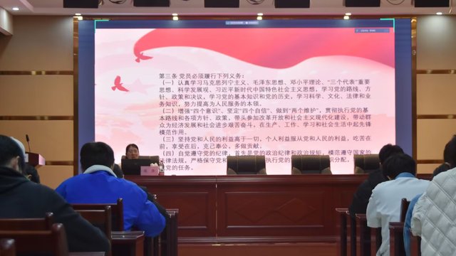 程老师以“党章党规”为主题,从党的二十大对党章做的重要修改、党章的概述、党章的发展历程、党章的总纲、党章的条文、学习和遵守党章六个方面进行讲解。程老师强调学习党章、遵守党章是全党同志的应尽义务和庄严责任,全党同志都应自觉加强党性修养,认真履行党员职责,并希望同学们都能以党员的标准严格要求自己,不断的向党组织靠拢。