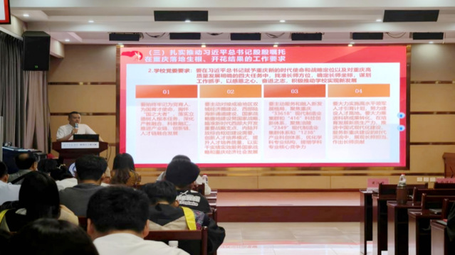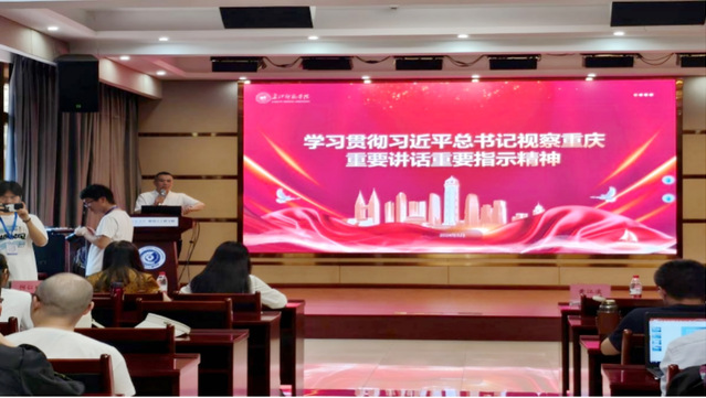 党课中,黄书记围绕习近平总书记对重庆战略地位的高度重视,从推动高质量发展,乡村振兴,生态环境保护,民生与社会治理四个方面展开。黄书记指出重庆作为中西部地区的重要枢纽,在国家区域协调发展战略中占据着举足轻重的地位。同学们要积极融入“一带一路”建设、长江经济带发展以及西部陆海新通道等重大战略布局,努力在新时代构建新发展格局中展现更大作为。随后,黄书记在推动高质量发展方面指明,重庆要以创新驱动为引领,大力推动传统产业的转型升级,同时要注重优化营商环境,激发市场的活力与创造力。此外,黄书记还提到了乡村振兴,指出生态环境保护和社会治理是关注的重点。最后,黄书记希望同学们立足本职岗位,积极担当作为,将个人的成长与重庆的发展紧密相连,在新时代的伟大征程中书写重庆发展的壮丽篇章!